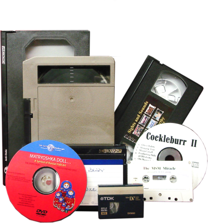 micro cassette, DAT audio, DVD video,